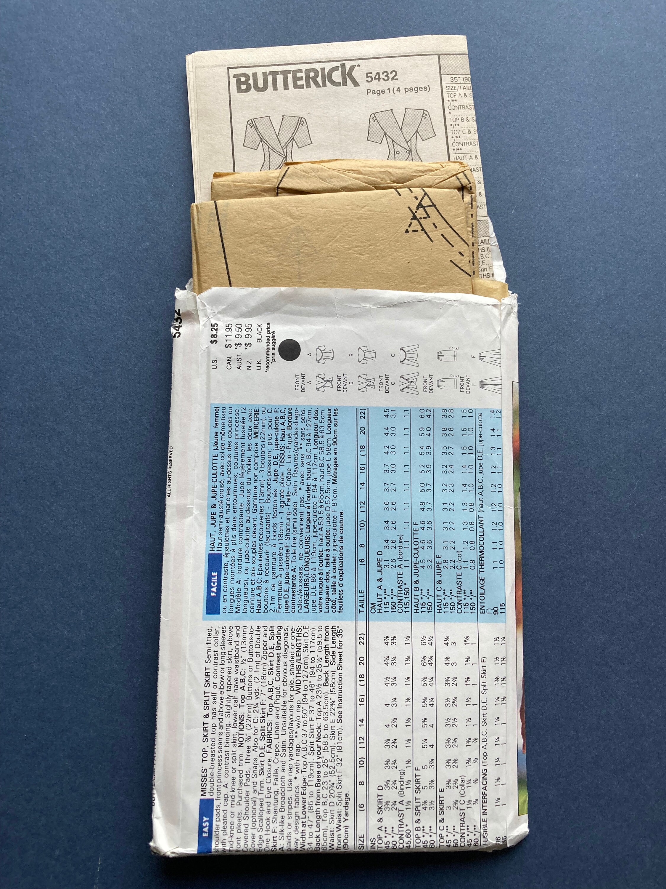 Butterick 5432 Sewing Pattern Misses Top Skirt And Split Etsy