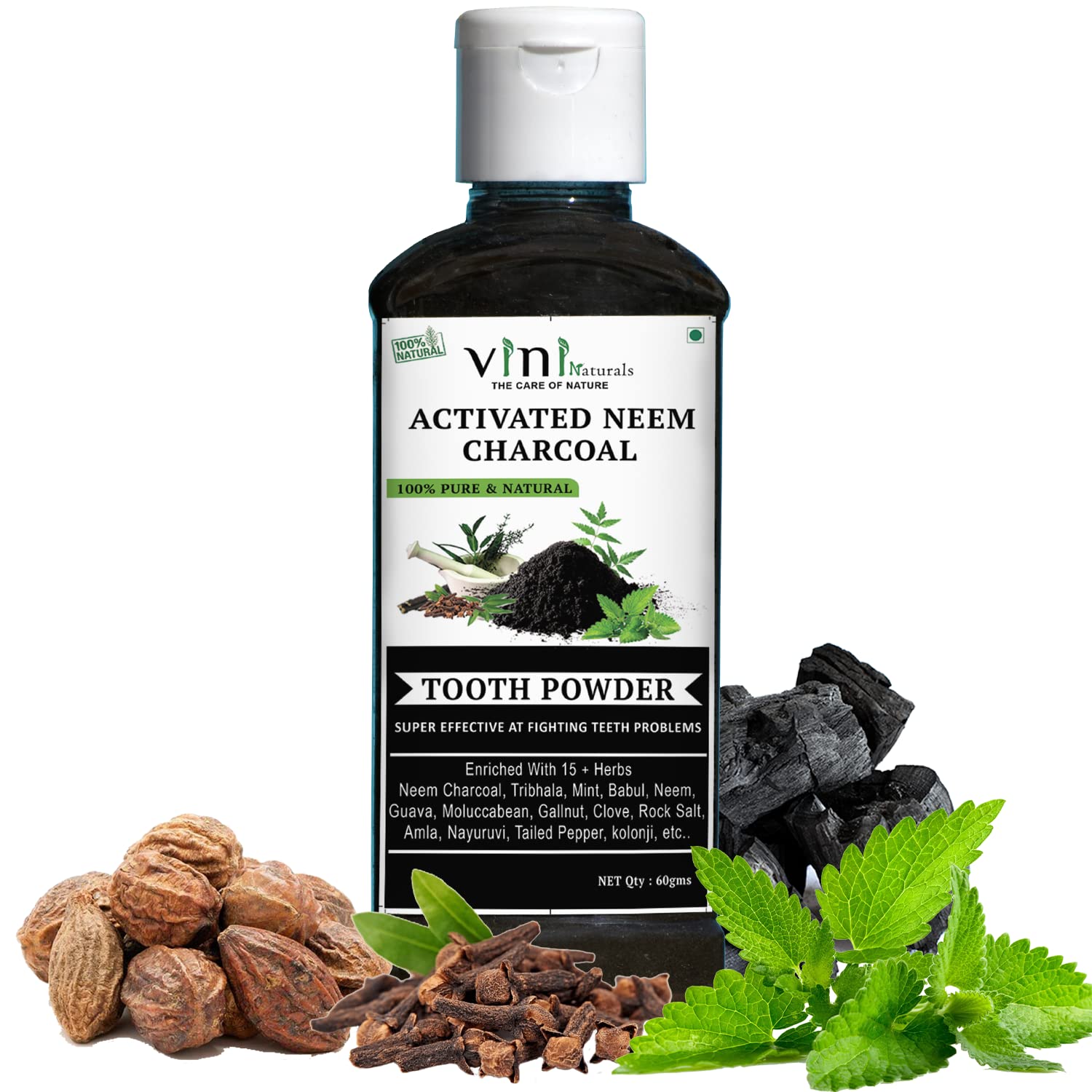 Vini Activated Neem Charcoal Tooth Powder 100 Natural No Preservatives Only 15 Herbs And Natural Minerals Powerful Herbal Cleanser Teeth And Gums 60gms Amazon In Health Personal Care
