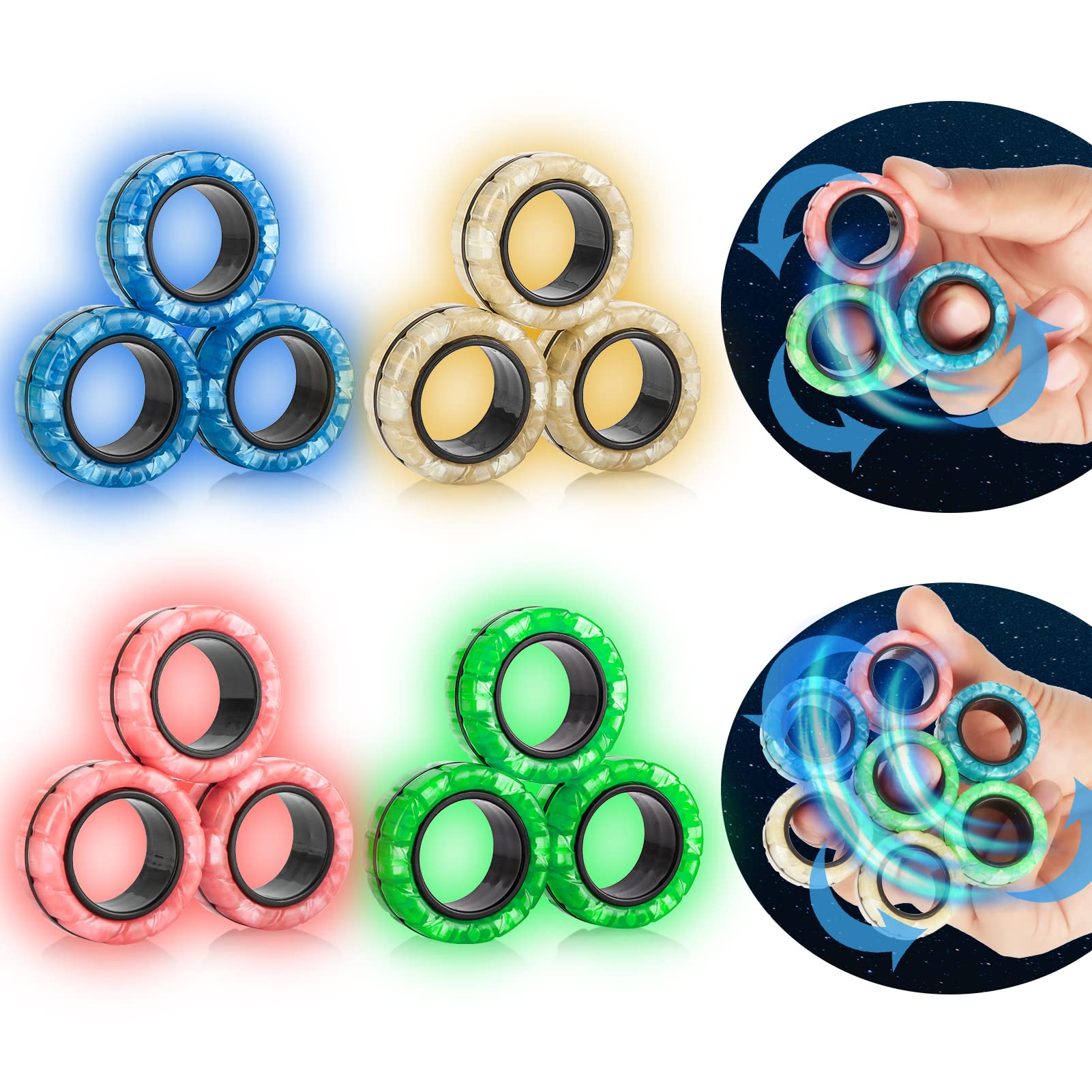 Amazon Com Mboutrising Magnetic Rings Finger Fidget Toys Set 12pcs Glow In The Dark Magnets Rings For Training Relieves Autism Anxiety Magical Fingears Rings For Adhd Great Idea Gift For Adults Teens Kids