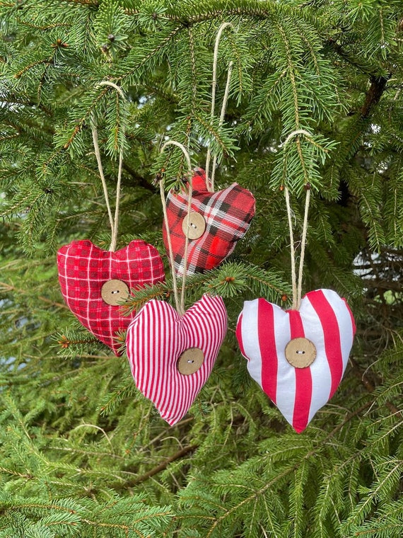 Heart Shaped Fabric Ornament With Button Rustic Natural Ornament Christmas Holiday Decor Handmade Gift For Loved Ones Spreading The Love Etsy