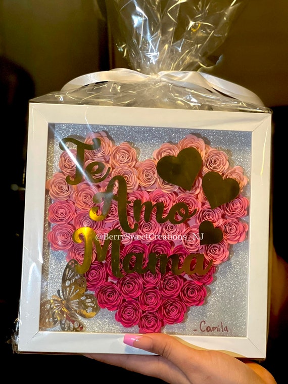 Heart Shape Shadow Box Heart Shaped Flowers Shadow Box Paper Flowers Frame With Customizable Writing Pink Customizable Shadow Box Etsy